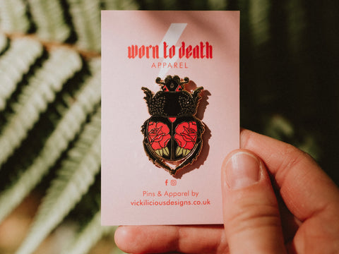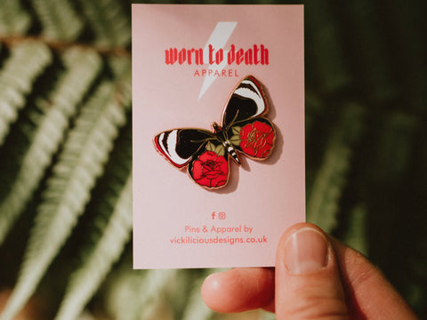NO RAIN, NO FLOWERS umbrella tattoo pin is part of my Kickstarter project Ink & Blood Rose. This hard enamel pin features my tattoo illustration of a pair of and umbrella decorated with blood red roses.